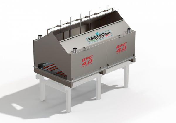 Cabina in acciaio inox 304 con aspirazione maggiorata, struttura con forma antigoccia, totalmente isolata dal telaio della linea per ridurre vibrazioni a zero.